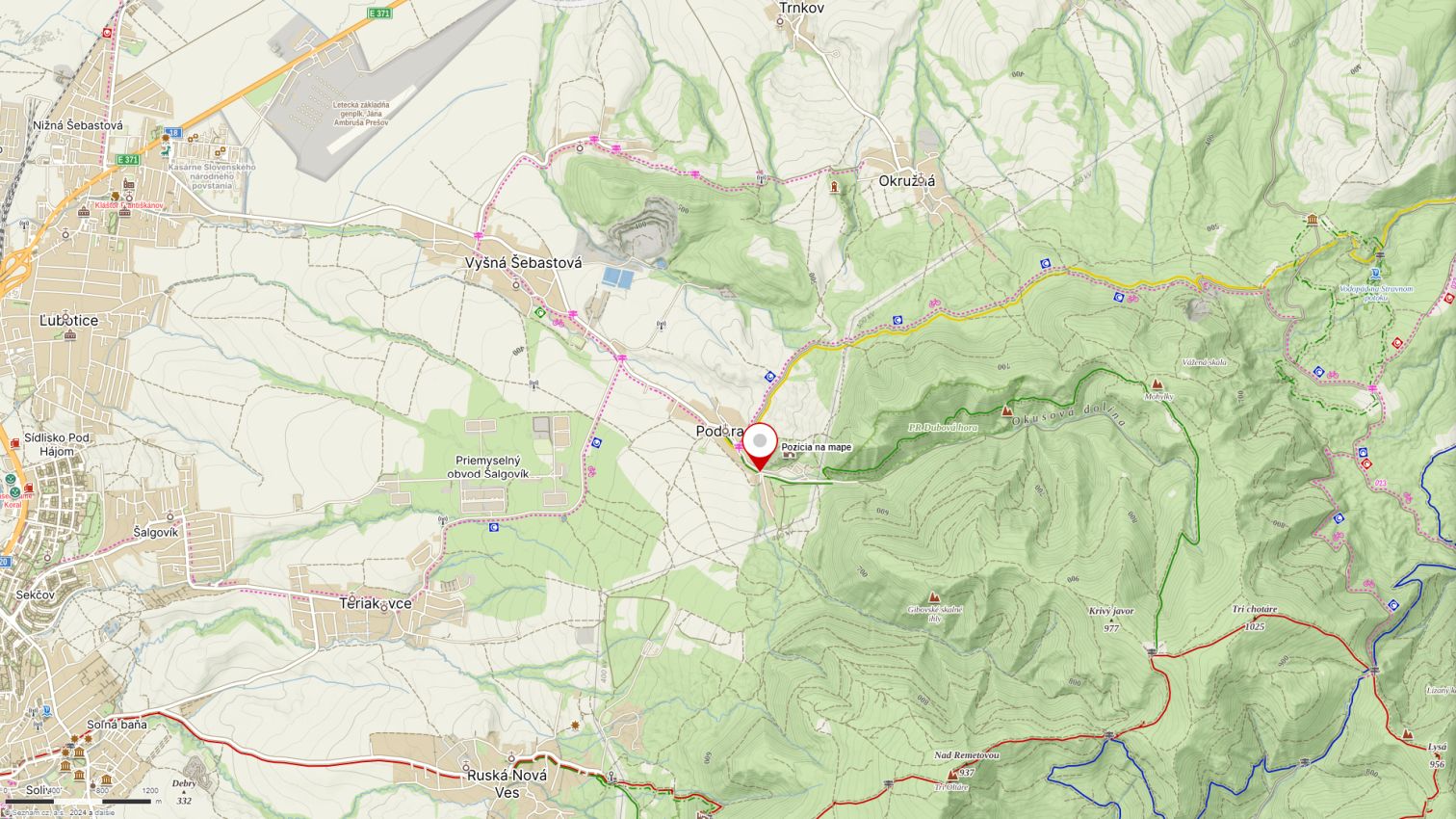 Východisko: Podhradík, rázcestie pod hradom Šebeš na východnom konci obce