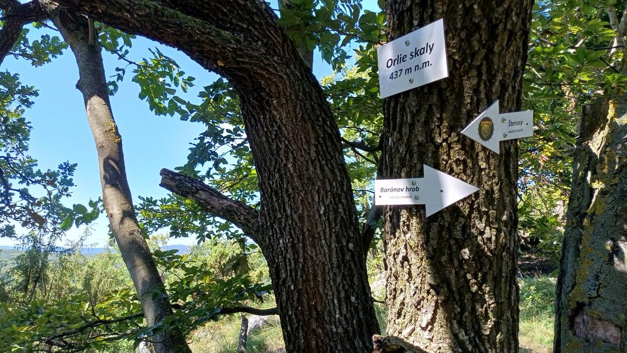 Poznámka: Z poslednej zastávky (Orlie skaly) možno podľa miestneho značenia prejsť (1,5 km) k poslednej zastávke náučného chodníka Čerenec, Tlstá hora, Malá Pec, Veľká Pec, Barónov hrob s podobným dizajnom panelov i značenia a zísť po ňom do jeho východiska v Prašníku, resp. do iných okolitých cieľov podľa značenia na ňom (Pustá Ves, Vrbové).